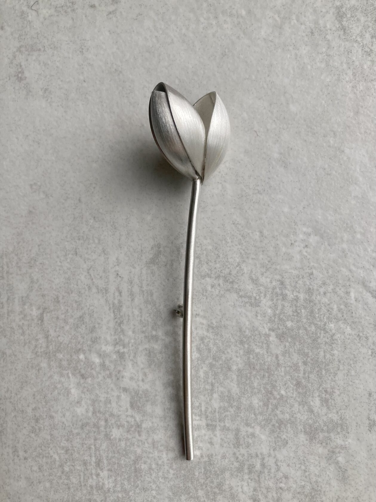 Brošňa sa uzatvára tenkou ihlou z chirurgickej ocele, ktorá je veľmi pružná a minimalizuje dierku do látky, takže Poupátko môžete nosiť na saku aj blúzke.
