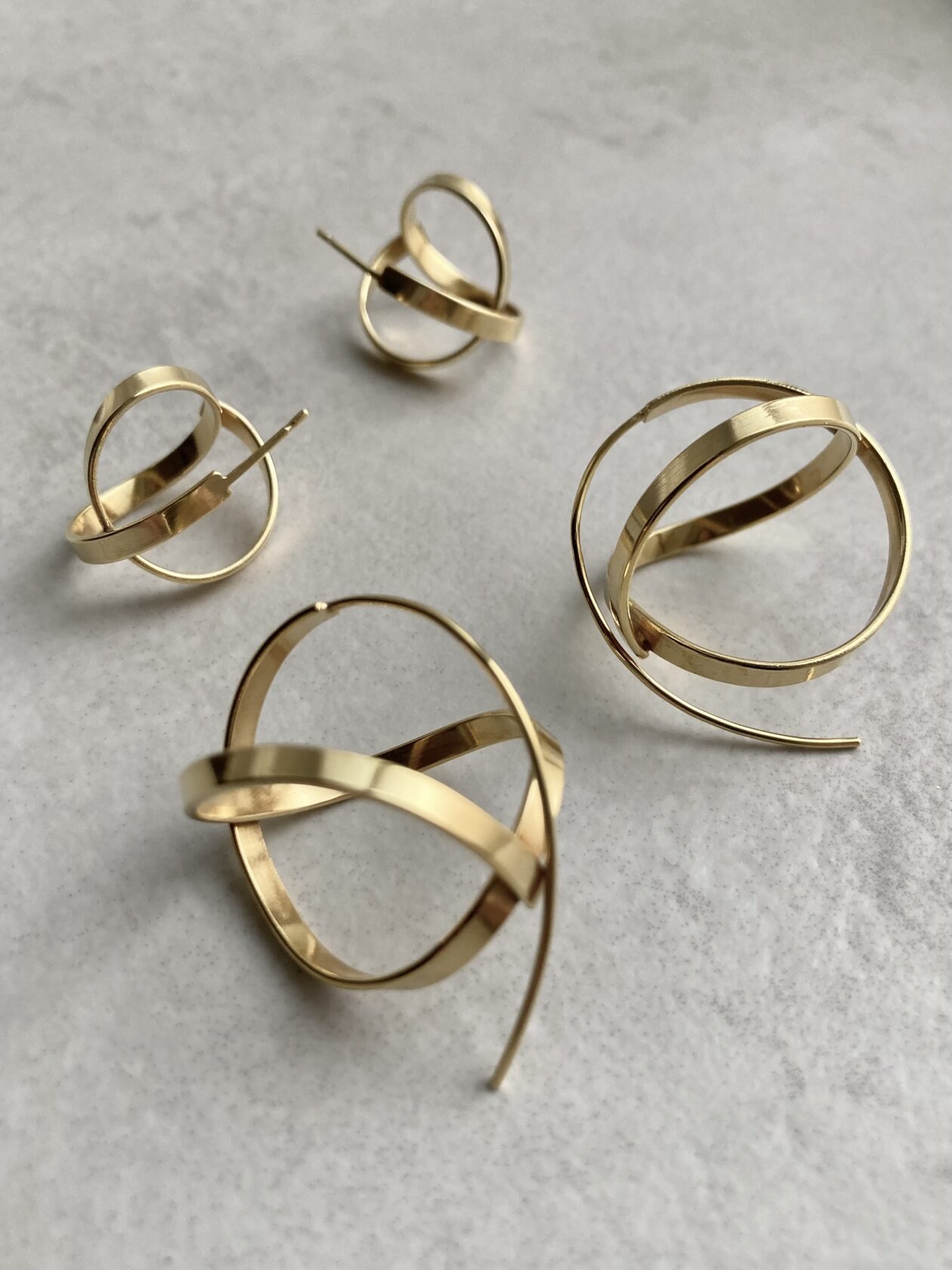 Náušnice tvoria pár, pričom jedna je zrkadlovým odrazom druhej. Pri ručnom tvarovaní môžu vzniknúť drobné nedokonalosti, ktoré však vystihujú koncept Wabi.